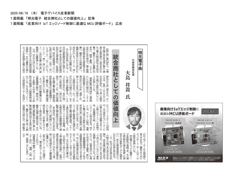 6月19日の電子デバイス産業新聞に弊社の記事・広告が掲載されました。